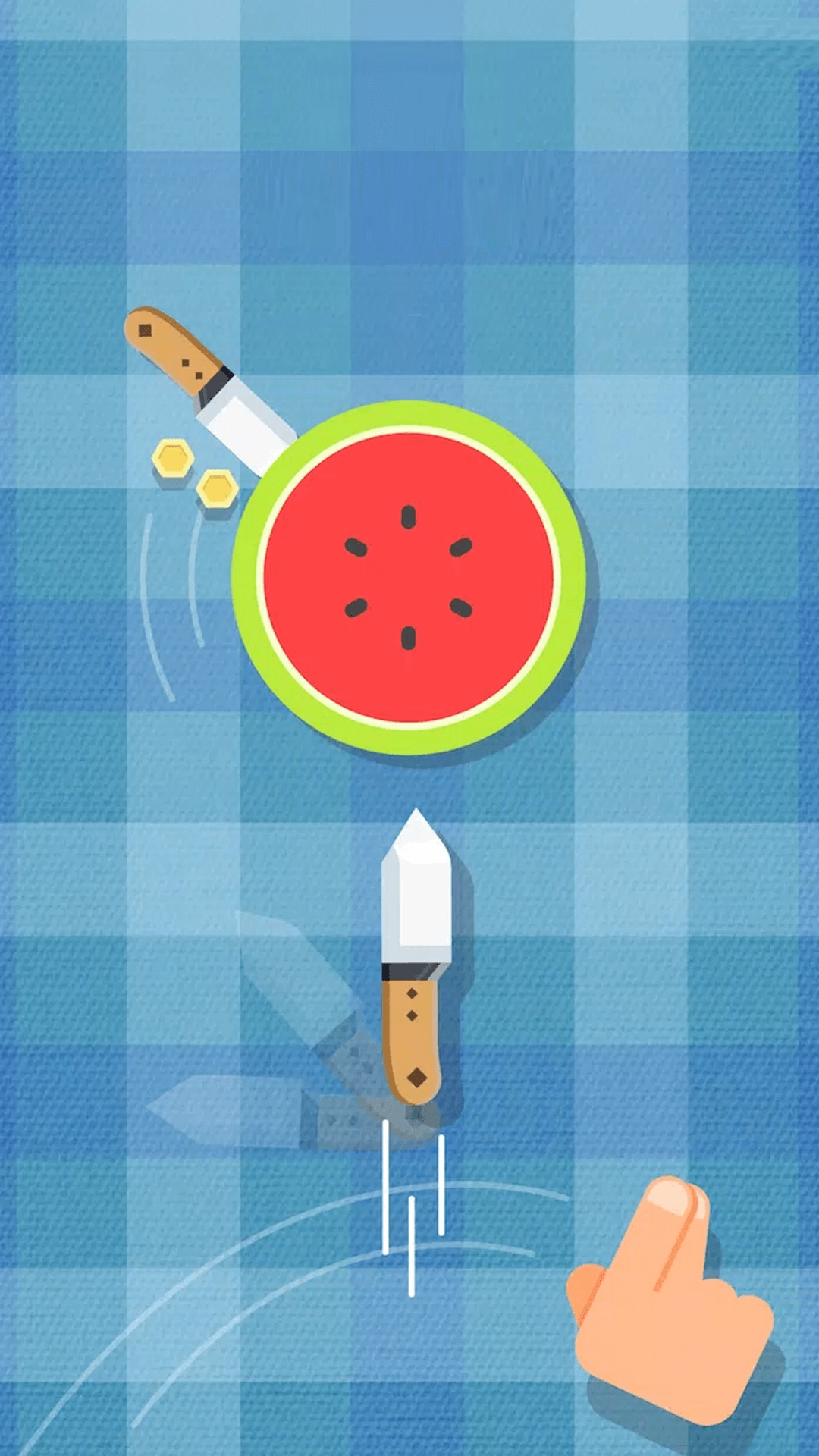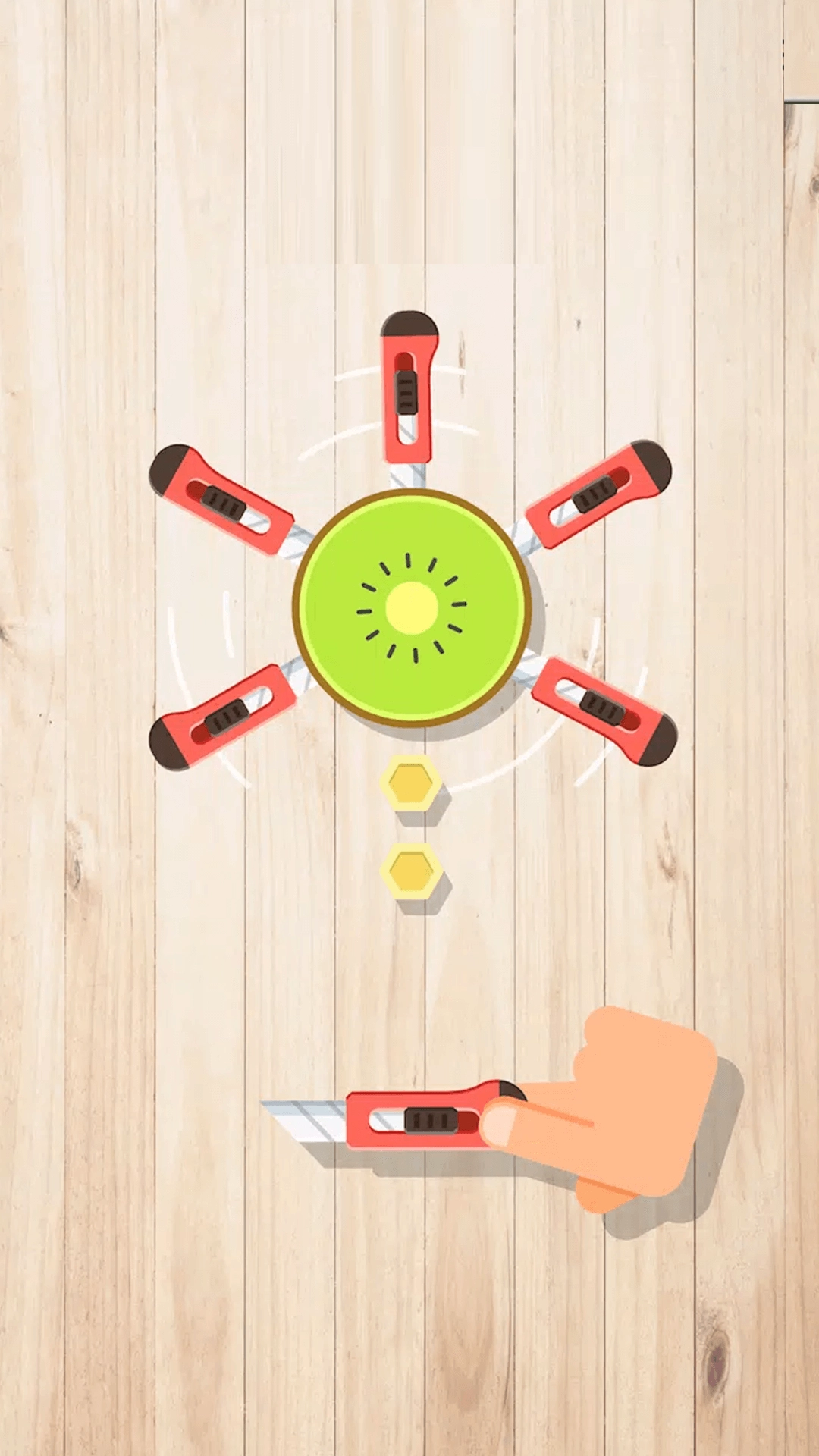 2、避开混杂其中的刀具和炸弹,一旦误刺则结束当前挑战,重新开始。