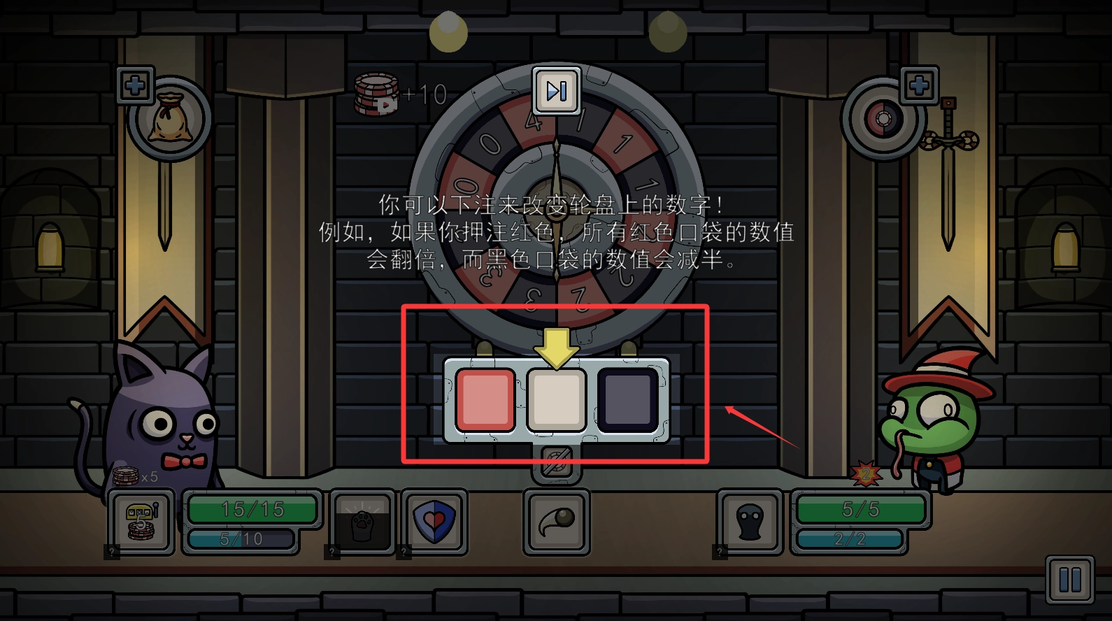 2、根据提示地牢旋转的就是敌人的伤害,你停在的格子就是自己的伤害。