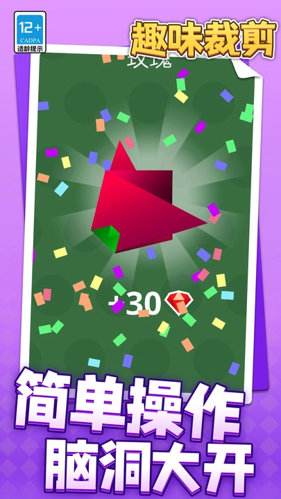 2、《趣味裁剪》是一款以手工折纸为主体的解压游戏,游戏中能让我们回忆童年时折纸的乐趣。