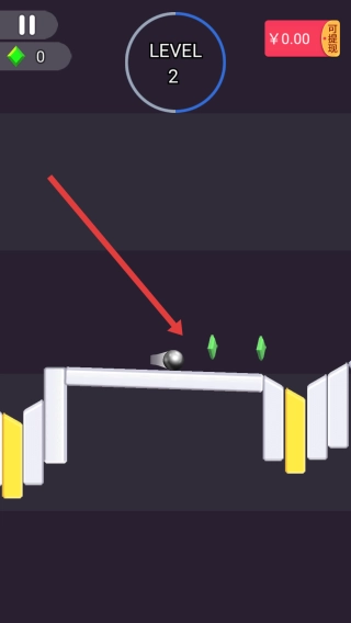3、在第2关中,需要控制小球收集绿色晶体,沿轨道前行,挑战新障碍,推进游戏进程继续挑战。