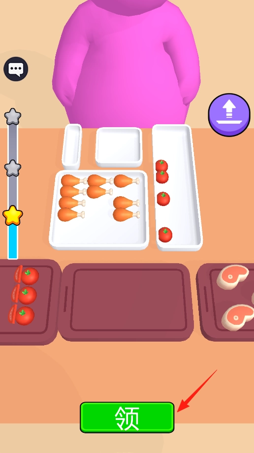 3、配餐完成后,点击“领”按钮,提交搭配好的食物给粉色角色,系统会根据搭配合理性给予反馈,完成投喂流程,体验从配餐到交付的完整玩法,感受结果验证的乐趣。