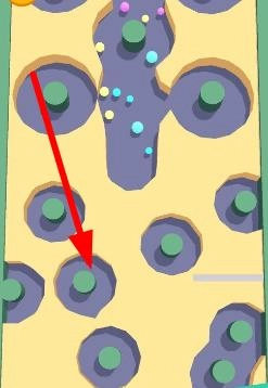 进入界面后,通过滑动屏幕来操控球球的移动方向,让它朝着坑洞滚动并填充坑洞;在此过程中要留意避开尖刺陷阱和移动的障碍物,从而完成基础的填坑任务。