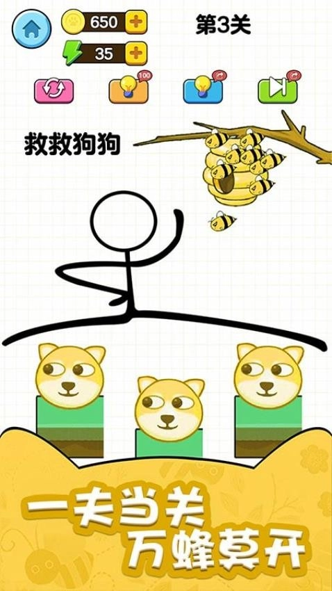 在这款趣味满满的物理益智游戏里,你将成为聪慧的救援队长,借助绘制各类保护线条来守护萌萌的狗狗们。面对蜂群侵袭的危险,得巧妙规划防御路径,利用地形特征搭建安全地带。游戏结合了物理引擎与即时策略要素,每一关都会碰到全新的敌人排布和地形考验。随着关卡深入,还能解锁特殊道具和创意玩法,让救援行动更具策略深度。简单好上手的操作配上魔性十足的画风,带来轻松又满是成就感的游戏感受。快来发挥你的创意,帮助狗狗们脱离危险吧。