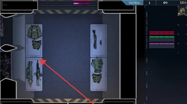 1、在装备准备界面,挑选箭头所指向的装备(例如护甲、武器等),完成部队的配置工作,以做好战斗所需的物资准备。