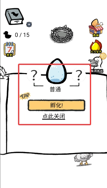 3、点击鸭蛋后,点击孵化获得你的第一只鸭子。