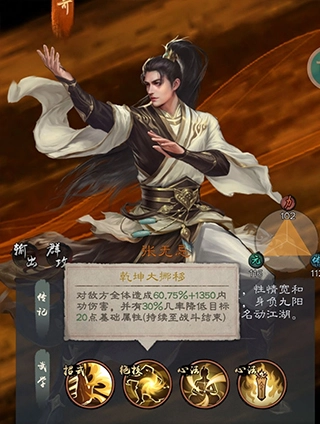 再加上张无忌和主角的乾坤大挪移(目前减属性数值比较低,感觉不是那么有用,也可能是技能描述错误,如果减的是三维属性的话这还是可以的)