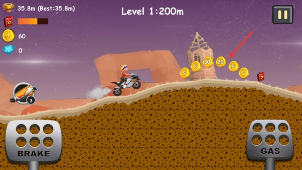 3、优先收集大金币(如20面值),利用地形跳跃,积累金币升级车辆,挑战更远距离。