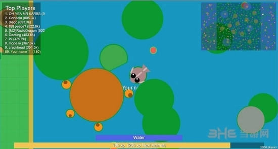 老鼠(虾米)-兔子(鱼)-猪(螃蟹)-鼹鼠(章鱼)-鹿-斑马-狮子-豹子-熊-鳄鱼-犀牛-河马-鲨鱼-龙。操作:鼠标左键冲刺,右键技能:潜水&打洞(鼹鼠)冲刺(犀牛)。要注意的是犀牛的冲刺只能直线,且撞到东西之后会强制停止并有10s左右的冷却期。另外生物の地形优势:猪在泥浆中速度飞快,熊及以上动物可以上树(深绿色区域),鳄鱼可以在蓝色水塘中躲避,水生动物闭气时间巨长且能在闭气时冲刺,但是上陆地之后水分会急剧下降。龙可以在任意区域自由活动。前期非常重要的技能:咬红色敌人の尾巴(其他颜色框的无法咬)。在下试过鹿的时候咬龙的尾巴直接变成熊hhh特爽√而且龙提醒巨大易躲易怼x
