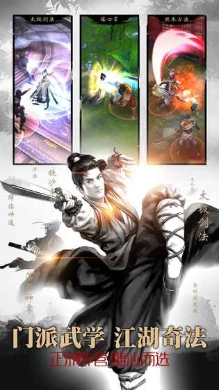 心法招式自由搭配,可刚可柔,亦正亦邪。独创的"武学相性"机制,不同流派组合会产生特殊效果。通过实战领悟可自创独门绝学。