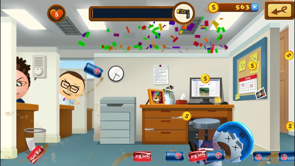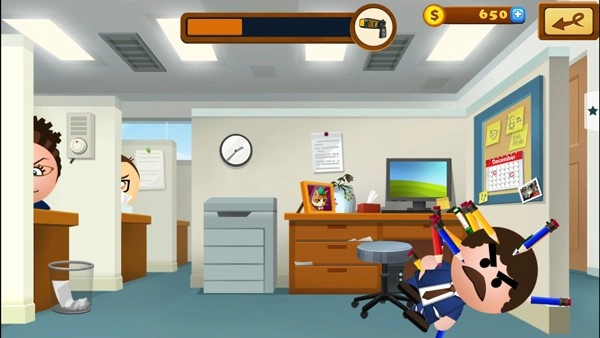 1、操作方式简单易懂,只需点击就能使用各类工具痛击老板。