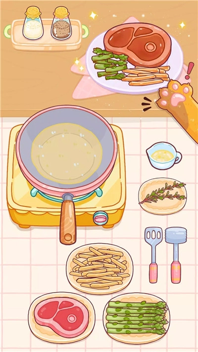 这是一款轻松简单的闯关游戏,没有复杂的机制,只需简单点击就能制作美食,体验烹饪的乐趣,感受陪伴的温暖。温馨多彩的游戏画面,也能带来舒适的视觉享受。