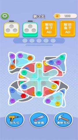 螺丝消消消是一款简单有趣的休闲闯关游戏。游戏画面设计简约,玩家能轻松上手。只需简单触碰画面就能完成螺丝拆卸,玩家需要辨别不同颜色的螺丝,并将它们放入对应的收纳箱里。游戏内还设有各类道具,这些道具能帮助玩家更快速地达成清除目标。玩家可以在轻松愉快的氛围中锻炼自身的思维能力。