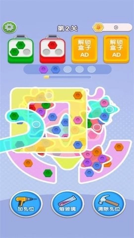 3、若没有合适的收纳箱,玩家可以使用金币解锁新的箱子,但必须根据螺丝的颜色选择正确的解锁目标。