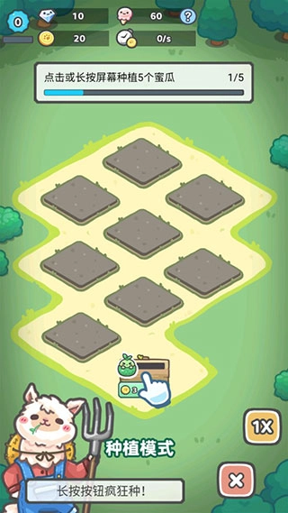 4、长按按钮。进入疯狂种植模式。