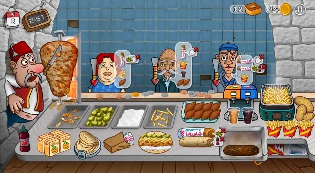 2. 沙威玛制作与售卖:根据顾客订单,快速准确地制作沙威玛,并赚取金币。