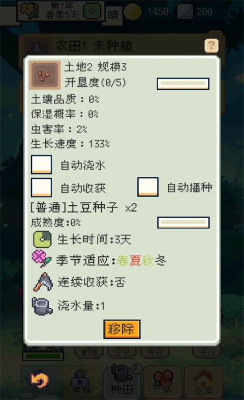 1、67种作物花样种植,除了要根据季节来种植,还需要管理土地的状态来培养更优秀的品种。
