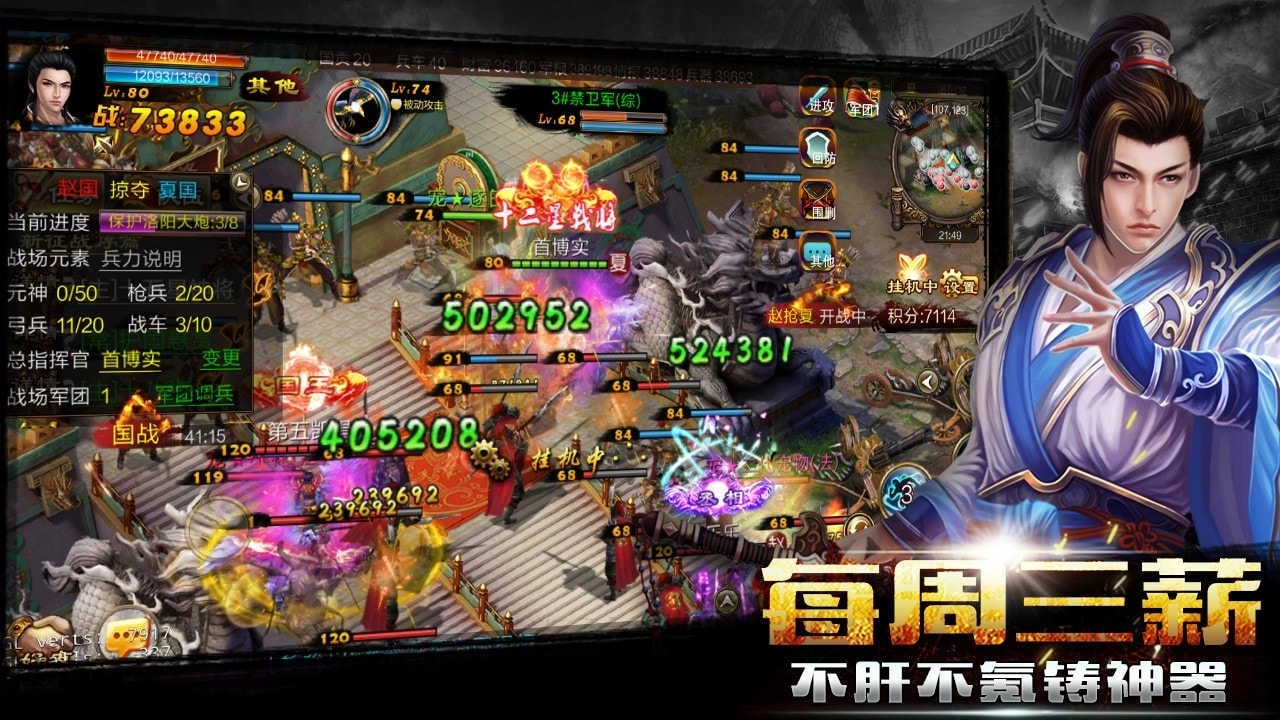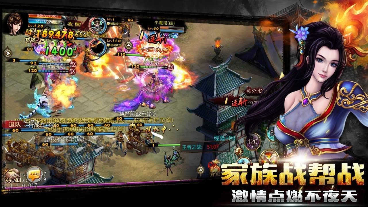 新征战的国战和帮战,都不是简单的攻城或战力PK。战场层层推进,兵车相交运筹帷幄,六国混战合纵连横,演绎真正中国古代战争。