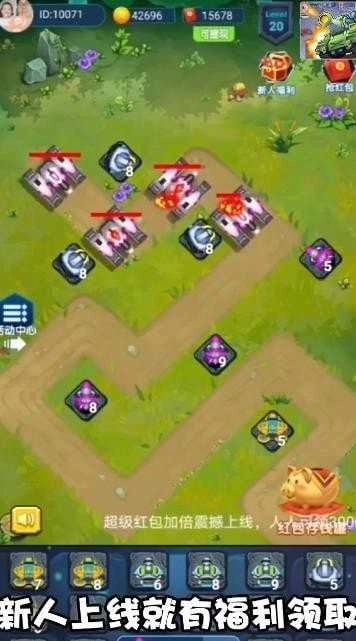 这里有8种不同类型的塔,分别是枪机、慢塔、炮塔、导弹塔、激光塔、双塔和金机。每一座塔都具备4个可升级的等级!