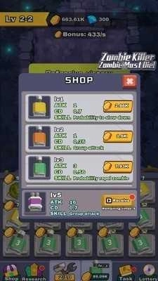 2、这里没有装备系统之类的设定,你只需持续升级就能提升它们的攻击力与射速;