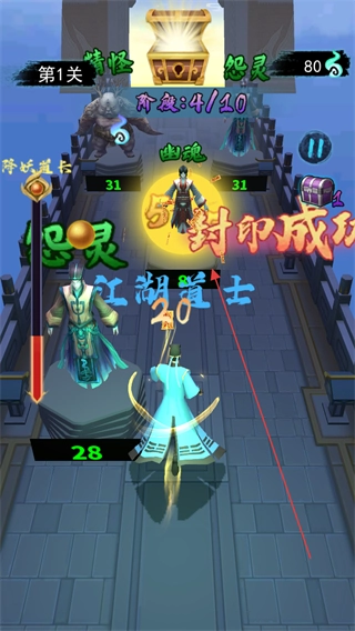 5、道行养成体系直观,收集的魂魄可转化为道行点数,用于提升道长的基础属性,解锁高阶符咒槽位,让降妖能力稳步提升,应对更强妖魔。
