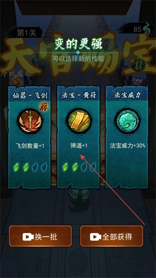 4、升级后选择法宝-黄符技能,获得弹道+1效果,增强输出范围。