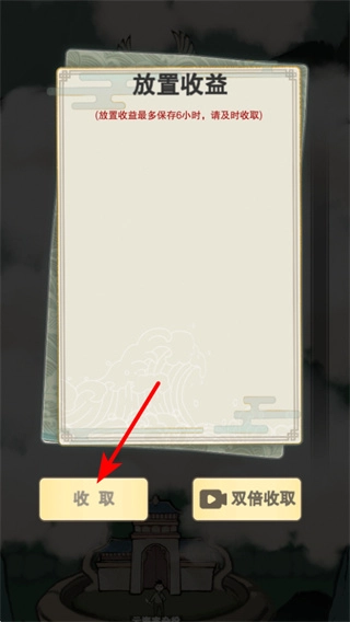 3、当放置收益界面弹出时,这是获取离线收益的核心操作,收取后可积累资源用于角色养成或宗门建设,提升游戏进度。