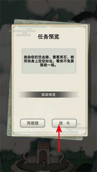 4、在任务预览界面,点击战斗按钮,这是开启任务挑战的重要操作,点击后角色会进入与杂役的战斗场景,推进游戏剧情。