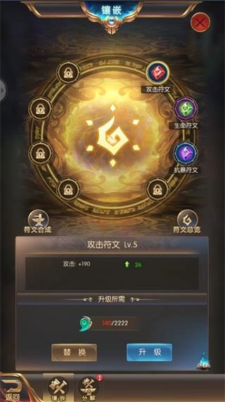 不同的符文有不同的属性加成,有攻击符文、生命符文、抗暴符文等,均可增强玩家在游戏中的战斗力。