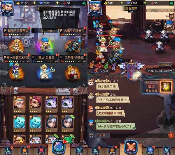 2、招募英雄并开展升级进阶升星养成,利用羁绊系统增强队伍整体战斗力。