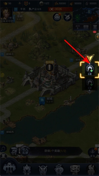 2、进入城池界面后,点击武将标识可打开部队管理界面,这是组建作战军队的核心操作,不同武将对应不同兵种,能提升部队的作战适配性。