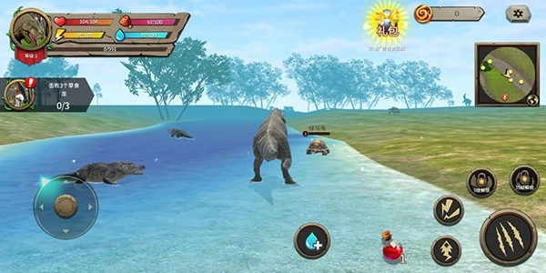 1、玩家需要探索游戏世界,寻找食物、水源和栖息地,保证恐龙的生存和成长。