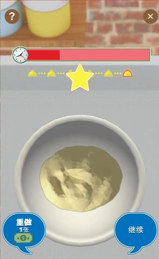 2、完成面团擀制后,看到界面的【星星】标识,点击红框内的【继续】按钮,推进到下一个料理步骤。
