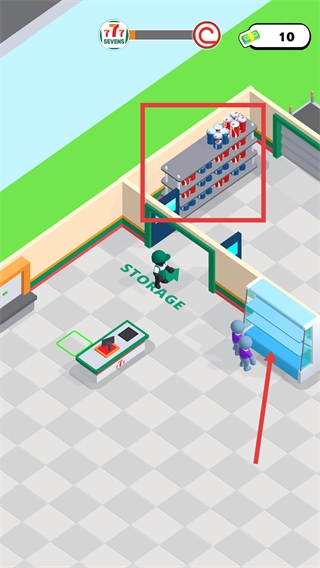 1、进入商店界面后,引导顾客前往相应区域,与此同时留意【STORAGE】方向,做好商品补充的准备。