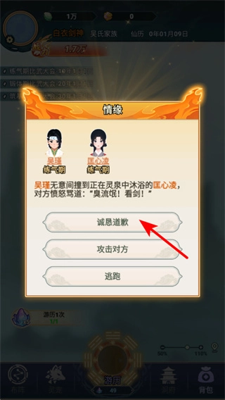 3、游历触发情缘事件时,选择对应选项可推进剧情发展,这是建立角色关系、获取增益的关键操作,影响后续的人际羁绊与资源收益。