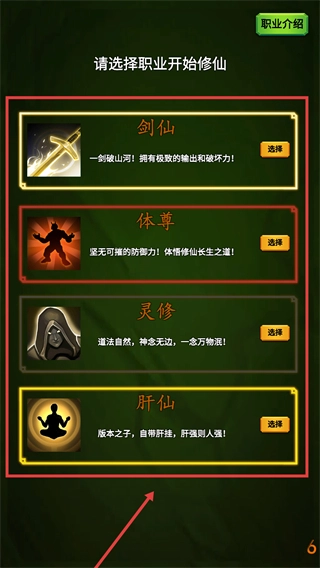2、在职业选择界面,推荐选择【肝仙】职业,其作为版本之子自带肝挂,能助力你更快提升实力。