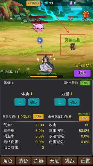 3、游戏中出现【灵袍(1品)】装备时,及时拾取穿戴,可有效提升你的气血与防御属性,增强战斗能力。