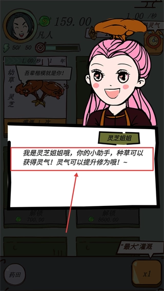 2、根据【灵芝姐姐】提示进行种草操作,获取【灵气】以提升自身的修真修为。