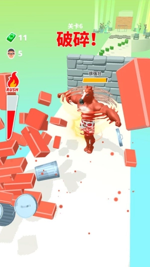 《奔跑吧猛男》是一款极具力量感的动作跑酷游戏。在游戏中,你需要操控角色在关卡里击碎各种障碍、躲避敌人的追击,同时收集能量饮料和电池来提升自身实力。游戏还设有紧张刺激的腕力头目战,你得快速点击屏幕,击败源源不断出现的肌肉对手,凭借灵活的操作闯过重重难关。