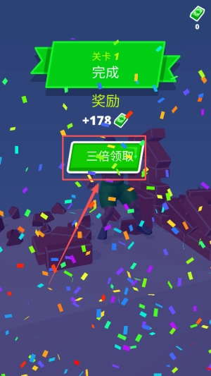 3、通关关卡:完成关卡1后进入结算界面查看奖励+178。