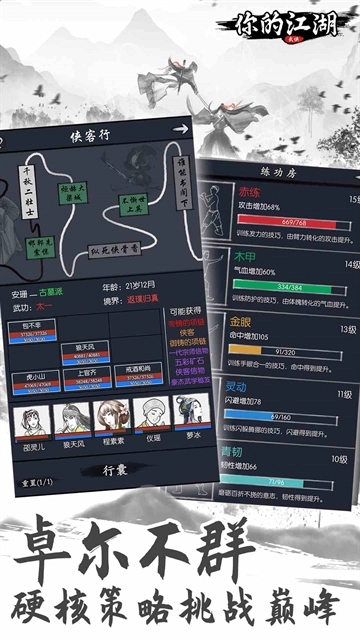 2、文字武侠的题材,游玩十分休闲,放置就能探索武林。
