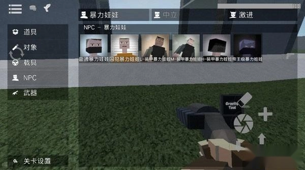 4、然后关闭背包,点击菜单拿出工具枪,然后点击+号图标就可以生成npc了。