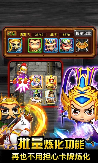 2、多种经典三国战斗可供体验,多种强力武将和英雄可供选择。