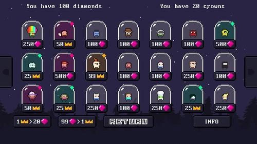 3. 拥有丰富的角色皮肤收集系统,玩家可以使用宝石兑换不同风格的像素造型来个性化自己的角色。