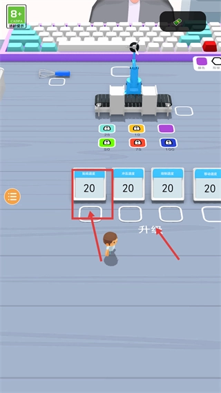 1、点击界面上标有【20】的功能模块,完成该模块的升级操作,解锁更多功能图标,从而扩展后续可执行的操作权限。