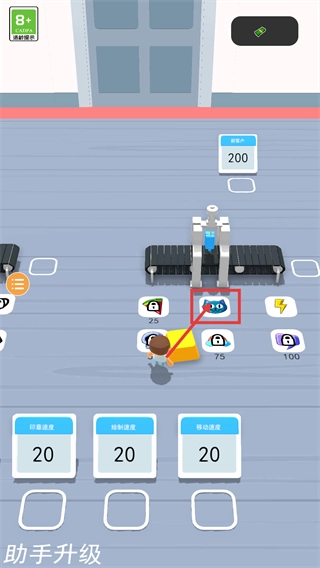 3、积累资源后点击对应功能图标完成【助手升级】,提升操作效率的同时,关注界面中的【200】数值进度,为进阶环节做准备。