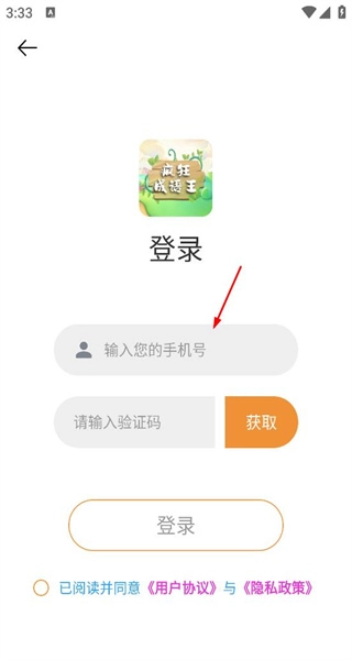 3、在登录页面输入手机号,获取并填写验证码,勾选协议后点击登录按钮完成账号登录。