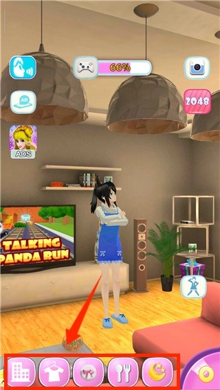 1、通过点击场景中的不同位置,引导虚拟女友在房间内自由走动和探索。
