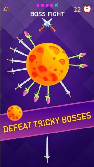 这是一款以飞刀投掷为核心玩法的休闲游戏。你需要看准时机,将飞刀精准地投掷到旋转的圆盘缝隙中,同时要注意避开已经插在圆盘上的刀刃。通过切开苹果和完成不同阶段的挑战,你可以解锁各式各样的新刀具。游戏画面简约,操作简单,能让你在放松减压的同时,尽情享受投掷飞刀的乐趣。