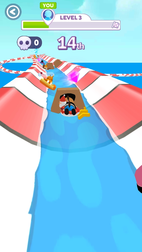 水上乐园大作战(aquapark.io)是国外知名游戏厂商VOODOO打造的休闲小游戏。在游戏里,玩家会进入一座水上游乐园,和另外15位玩家展开紧张刺激的水上滑梯竞速。玩家要借助水流持续前进,过程中得避开滑梯上的障碍与喷水陷阱。不仅如此,玩家还能直接跃出赛道,降落在更靠近终点的位置,助力自己赢得比赛胜利!