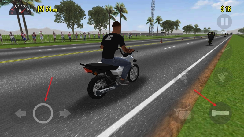 2、进入场景后,点击右侧的车把手可以开始加速前进,左侧的方向键控制转向。